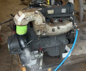 Nach dem ersten Erkunden und der ersten Probefahrt mit dem defekten Motor war klar, der ist wirklich nicht mehr zu retten, also habe ich angefangen, den Ersatzmotor umzurüsten. D.h. alle Marineteile müssen vom alten Motor abgebaut und an den Ersatzmotor angebaut werden. Zum Beispiel die Wassergekühlte Abgasanlage.